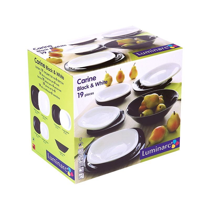 Serviz Za Hranene Luminarc Carine 19 Chasti Byal Cheren Hubav Den
