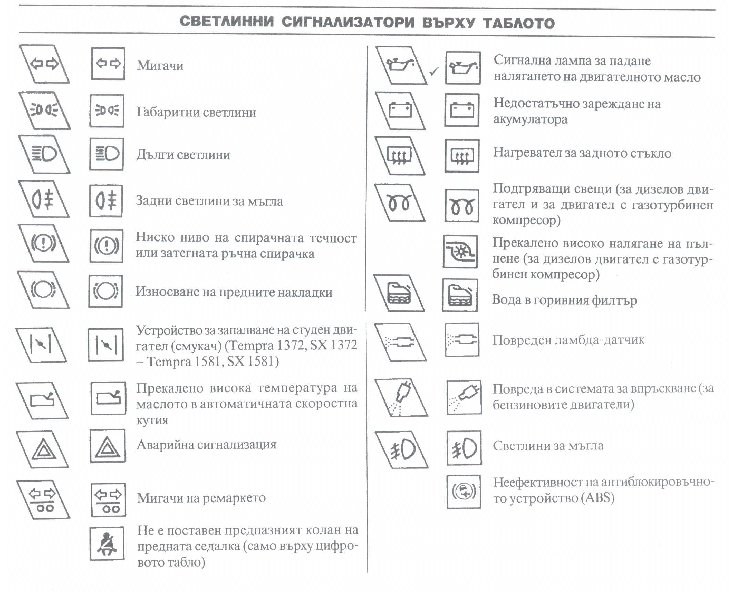 причината е че символите на таблото варират от кола до кола.